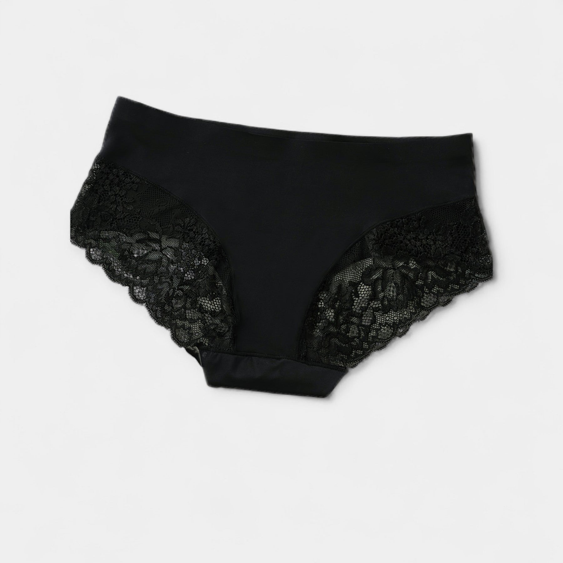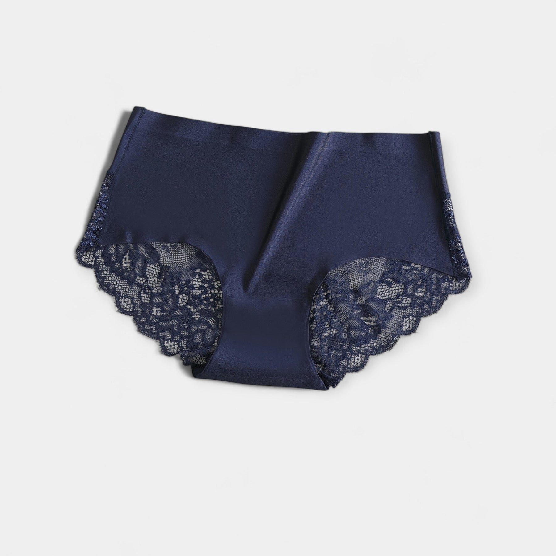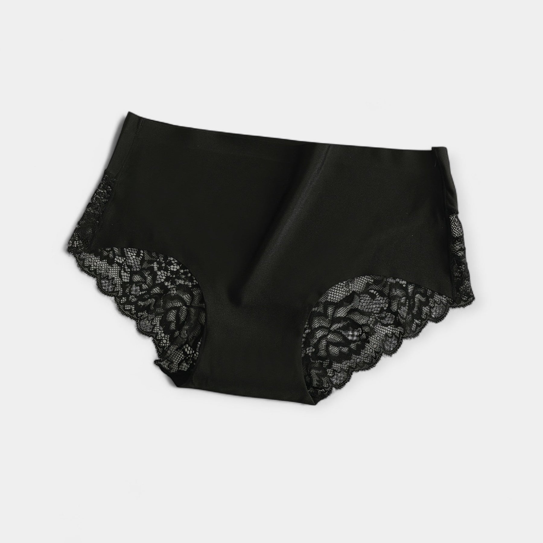 Μονόχρωμα σλιπ με δαντελένια λεπτομέρεια και μεσαία μέση, για θηλυκή και κομψή εμφάνιση.